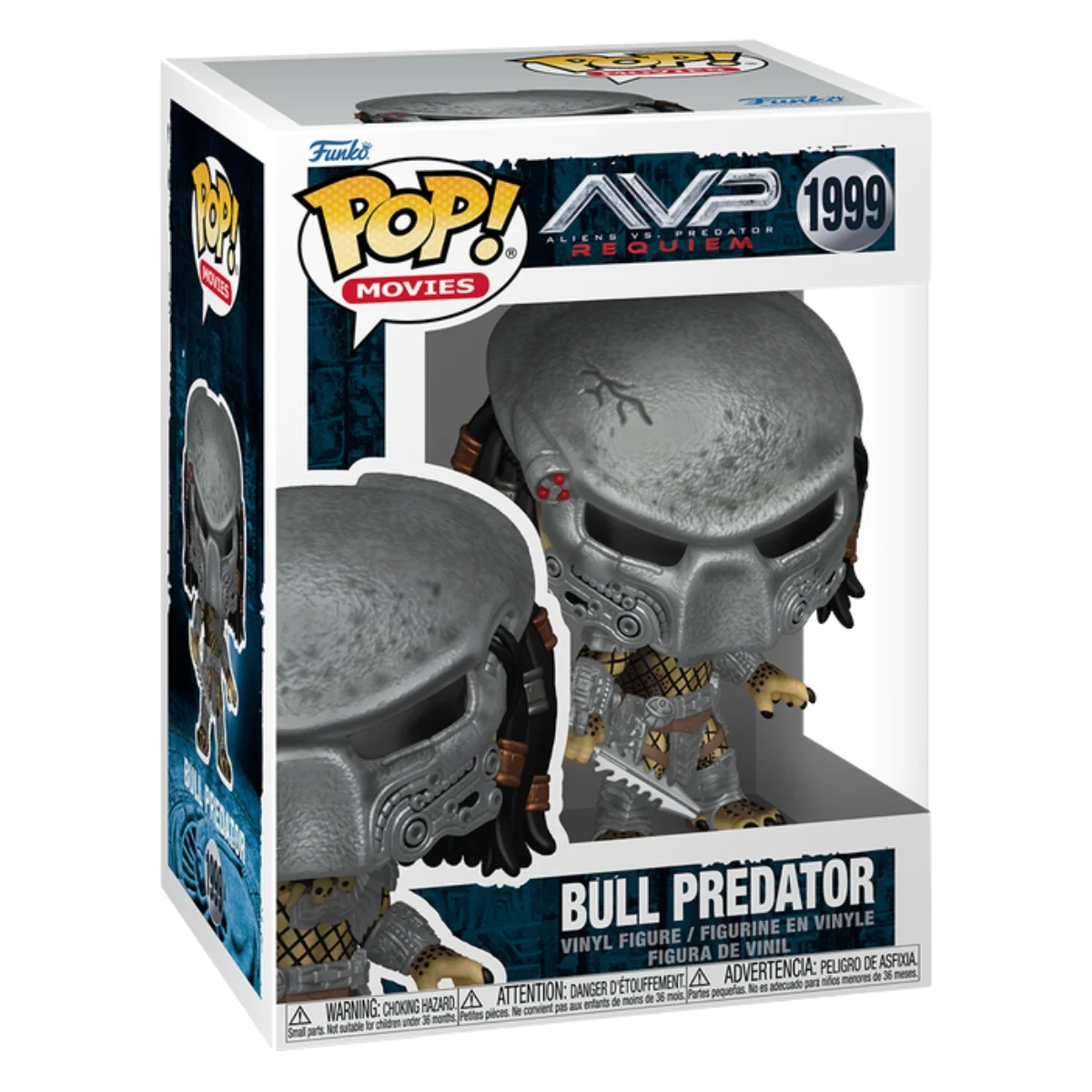 A primera vista, el Funko Pop! Bull Predator destaca por su aspecto intimidante y su diseño fiel al universo cinematográfico. Su cuerpo masivo y la armadura tribal futurista transmiten toda su energía salvaje. Asimismo, los tonos metálicos y las texturas detalladas reflejan la crudeza del combate entre los Predators y los Aliens. Cada línea del diseño demuestra un trabajo minucioso que convierte a este pop! en una verdadera pieza de arte coleccionable.