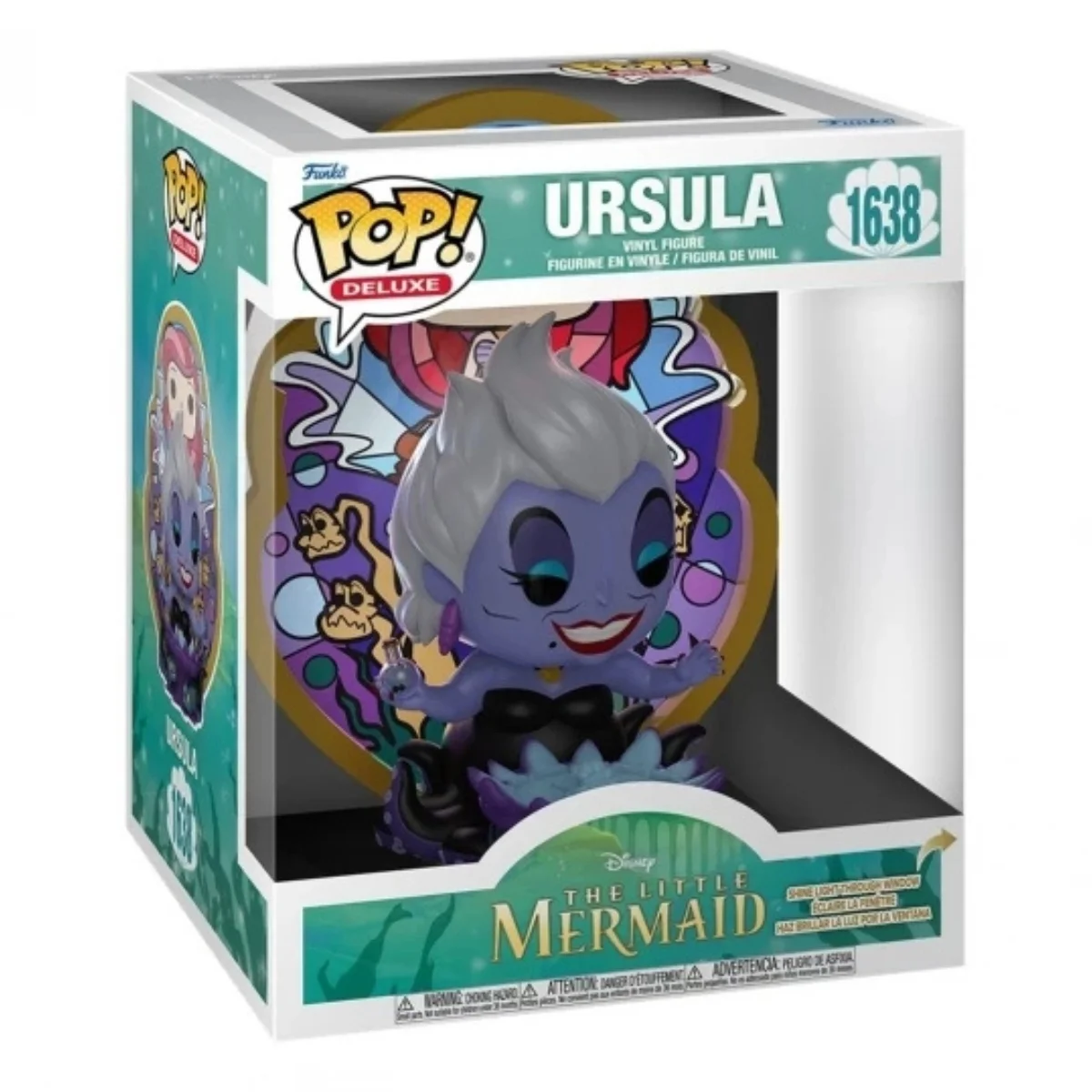 Además, al tratarse de una edición Deluxe, esta figura ofrece un nivel de detalle superior. Los colores morados y negros se funden armoniosamente. Mientras que el brillo en su collar y la textura del trono marino hacen que la figura destaque aún más. Por lo tanto, si buscas una pieza que combine belleza y poder, este Funko de Ursula 1638 será el centro de todas las miradas en tu colección.