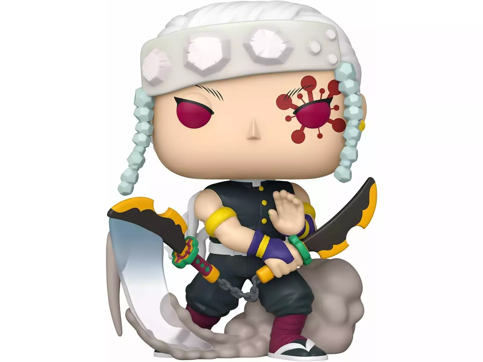Este Funko captura a la perfección la esencia de Tengen: su icónica banda en la cabeza decorada con piedras preciosas, su expresión confiada y, por supuesto, sus mortales espadas nichirin gemelas. La pose refleja su actitud desafiante y segura, transmitiendo todo el dinamismo que lo caracteriza en la serie.