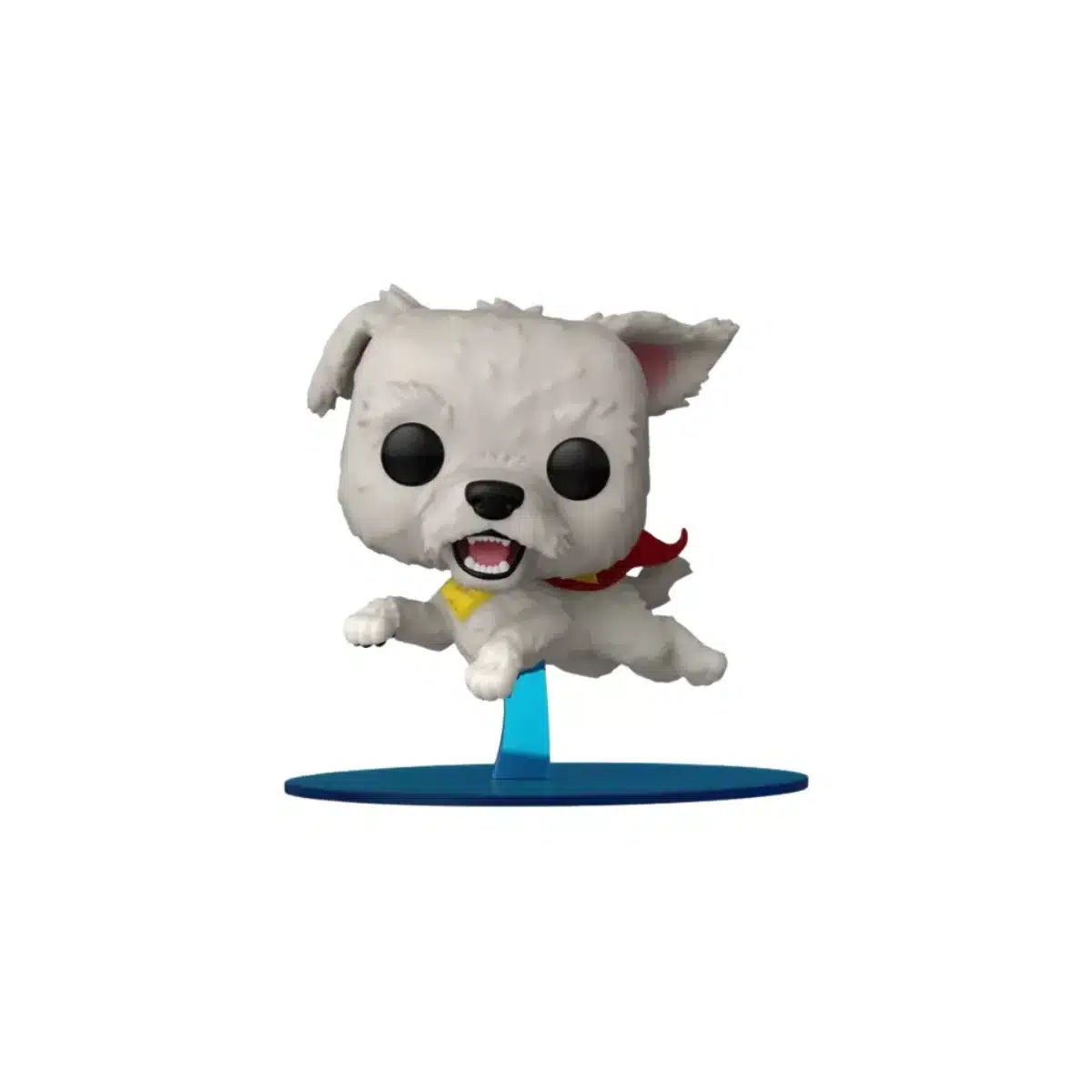 El diseño de esta figura es simplemente encantador. Krypto aparece sentado con su inconfundible capa roja al viento, su mirada noble y su collar con el escudo de Superman en miniatura. El contraste entre el blanco de su pelaje y los colores vivos del atuendo hacen que resalte en cualquier colección, aportando un aire heroico y adorable a partes iguales.