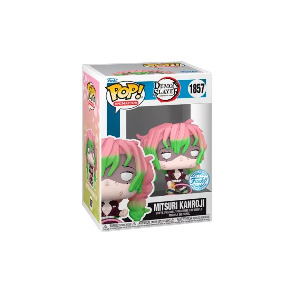 El diseño de este Funko Mitsuri Demon Slayer 1857 SE destaca por su fidelidad al anime, cuidando desde la caída de su cabello tricolor hasta su katana envainada, símbolo de su estilo de lucha único. Sus ojos grandes y expresivos capturan su espíritu amable, mientras que la postura dinámica refleja su determinación frente al mal.