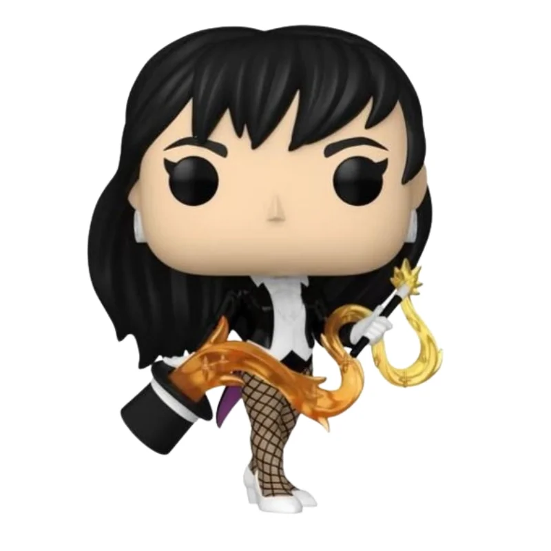 El diseño del Funko Pop Zatanna 623 captura su icónica estética de ilusionista: sombrero de copa, chaqueta elegante y medias de rejilla, respetando fielmente su imagen clásica en los cómics.