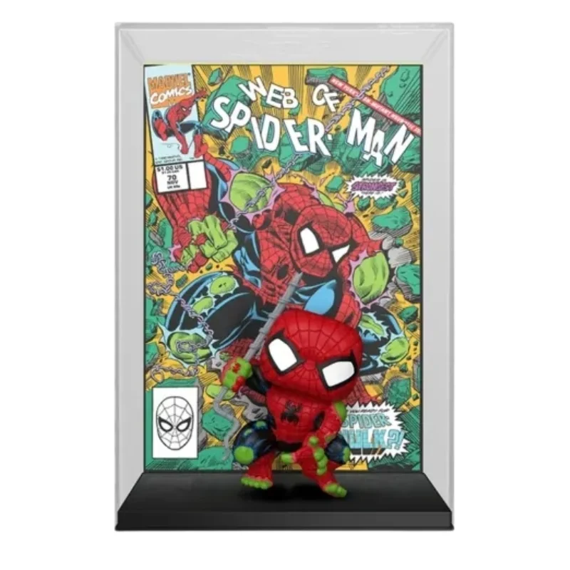 El diseño de este Funko Pop Cover Spider-Hulk 79 destaca por recrear una portada de cómic icónica, integrando el muñeco con el arte original en un formato expositivo premium. La combinación del cuerpo musculoso de Hulk con el traje de Spider-Man crea un impacto visual inmediato, haciendo que este muñeco pop de Marvel se convierta en una pieza protagonista dentro de cualquier colección.