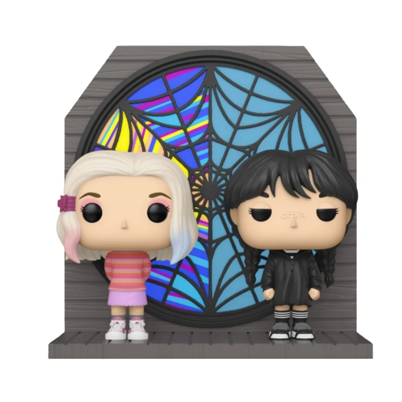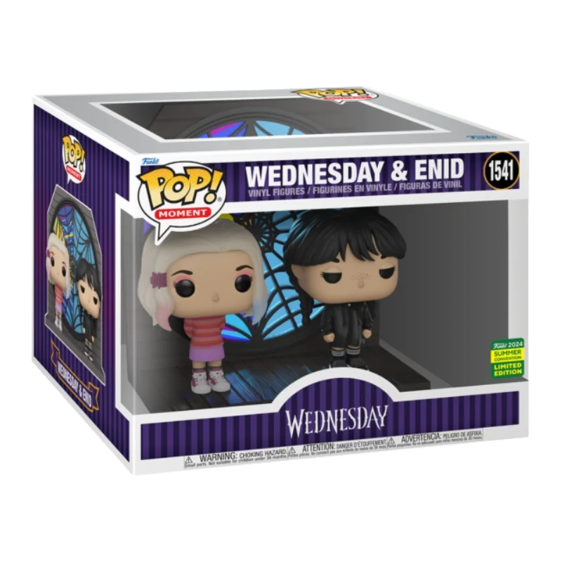- Diseño y presentación. Este Funko Pop de Wednesday y Enid está fabricado en vinilo de alta calidad y se presenta en una caja expositora con ventana frontal.